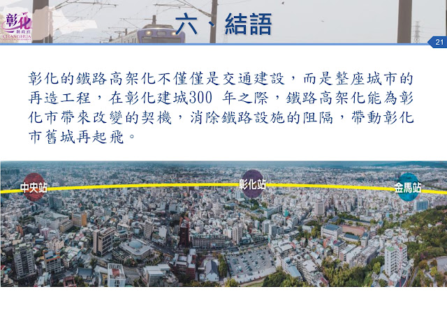 王惠美縣長體察縣民對彰化市鐵路高架化的殷切期盼,上任時即將鐵路高架化列為最優先推動之重大建設,經過多次與中央協商及努力,今(18)日下午行政院國家發展委員會召開第91次委員會議進行審查,王縣長親率縣府團隊與會,終於獲國家發展委員會審查通過,該會並將續呈報行政院核定。行政院核定後全案將進入綜合規劃及環評階段,縣府也將同步配合擬定變更彰化市都市計畫,宣告高架化工程進入實質開發程序。