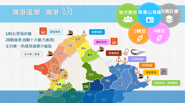 今(30)日新北市市政會議上,農業局漁業處針對漁港精進轉型專案報告,推出「日夜嗨漁港」在維持既有漁港漁作功能保障漁民生計的基礎上,更發掘漁港特色進行青春山海線改造,從聆聽及解決在地漁民困難的下罟子漁港浮動碼頭開始、串聯自行車道及兼顧文化及親水風貌的淡一漁港、即將新建的富基漁港重機驛站和漁民休憩中心、釣魚天堂草里漁港的咖啡驛站;未來即將重建的龜吼漁港漁夫市集、特色打造深澳漁港船釣體驗育樂中心、以及澳底漁產暢貨中心等,白天漁港有著各種不同的風貌;到了晚上,夜漁港經濟啟動,水湳洞漁港展覽、富基漁港時尚走秀、淡二漁港(漁人碼頭)繽紛煙火光雕秀、草里釣魚吧親子夜釣、深澳漁港光雕水舞及最棒的船釣生活及未來將重新招商打造的淡二漁港複合式商場,串聯成北海岸漁港珍珠鍊,也將是全國國人出門休憩的新選擇。