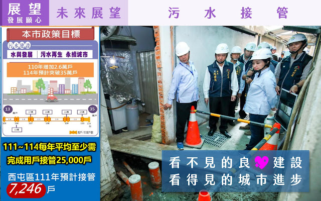另外,西屯區公所今日也就建設、交通、人本、社福、展望進行區務簡報及亮點介紹。建設部分包含台中綠美圖、中央公園、中台灣電影中心等場域等提升台中軟實力;交通面向包含道路燙平及打通拓寬等工程;此外,東大溪水環境改善、污水下水道工程、及美樂地計畫等提升人本;而台中市力推社會住宅及公托公幼,讓民眾願生敢養好安心,未來將持續推動相關亮點建設或措施,讓台中成為幸福進行「市」。