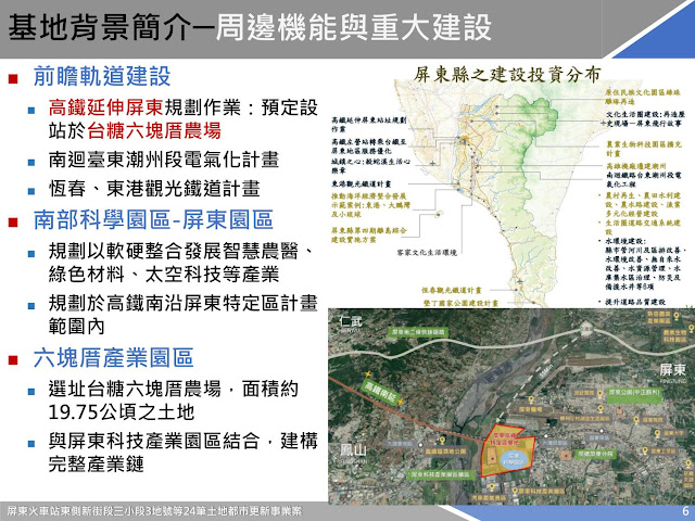 未來此區發展因應屏東火車站交通串聯高鐵屏東站、臺鐵六塊厝車站、屏東科學園區其住商前景無限,預估都更後將與高鐵屏東站共創南高屏城際生活圈,期透過公私協力,強化地方發展,締造投資人、原住戶、民眾、屏縣府與國營事業「五贏」局面,樹立南臺灣都市更新新典範。